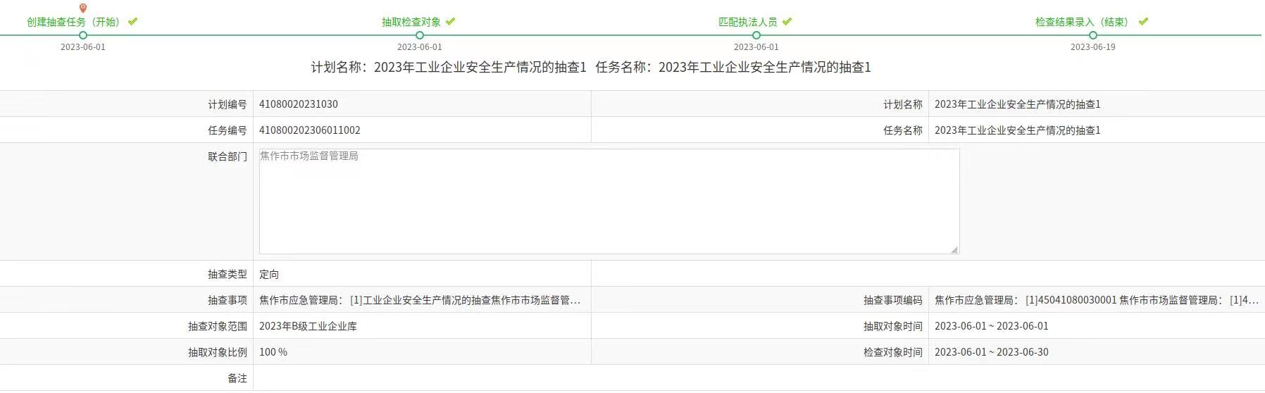 2023年随机抽查事项结果