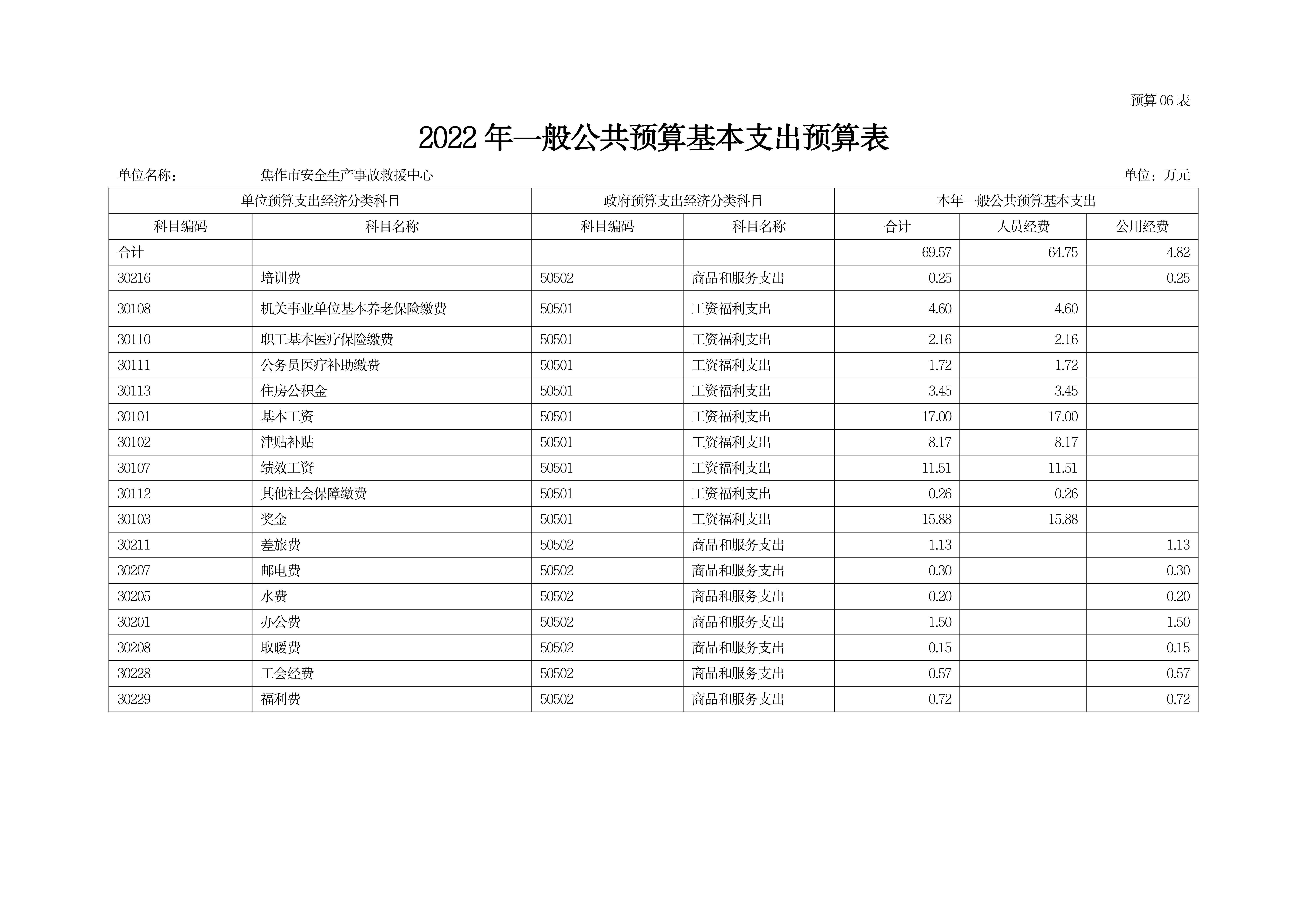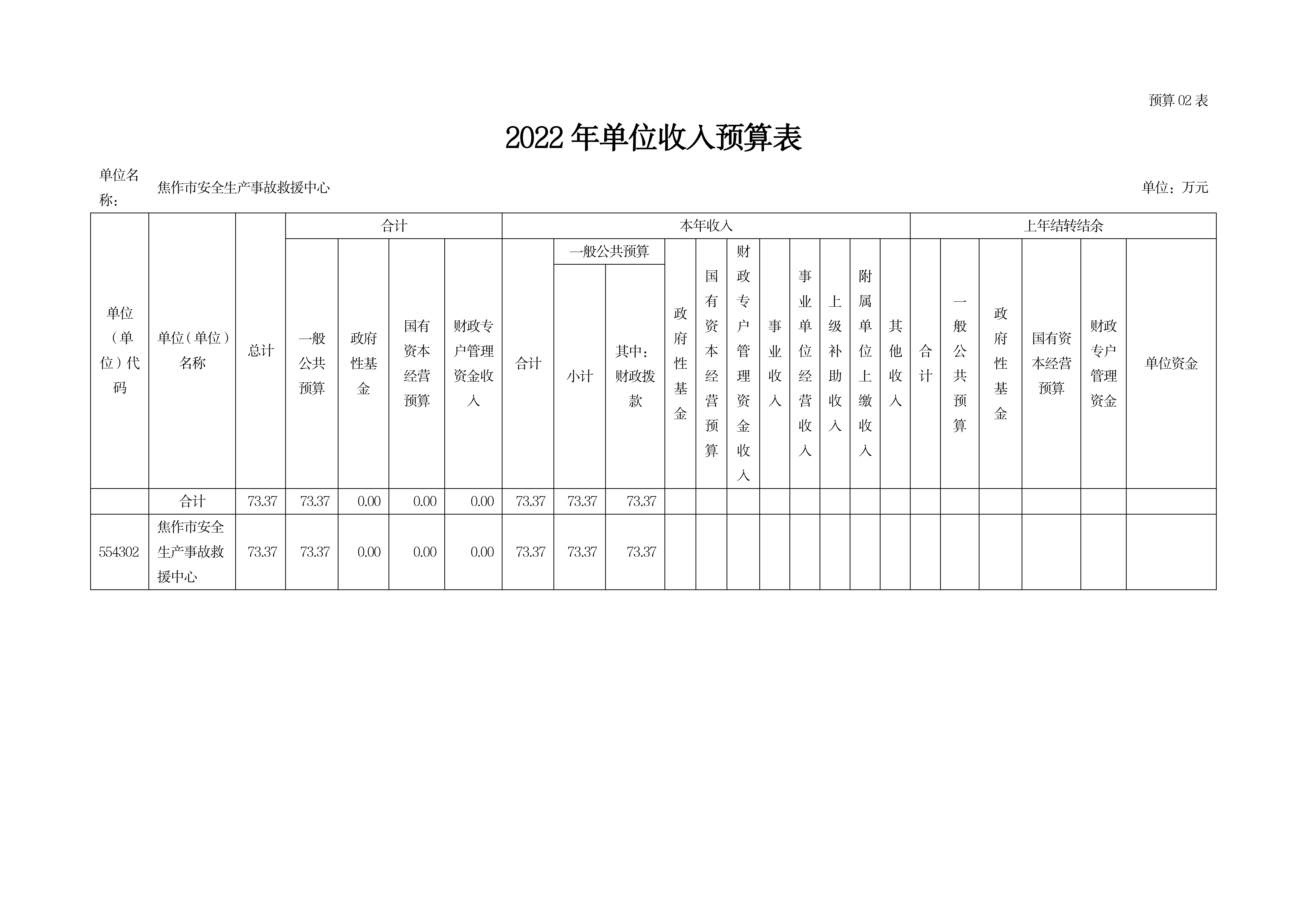 焦作市安全生产事故救援中心2022年度单位预算公开