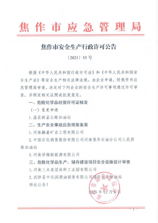 焦作市安全生产行政许可公告