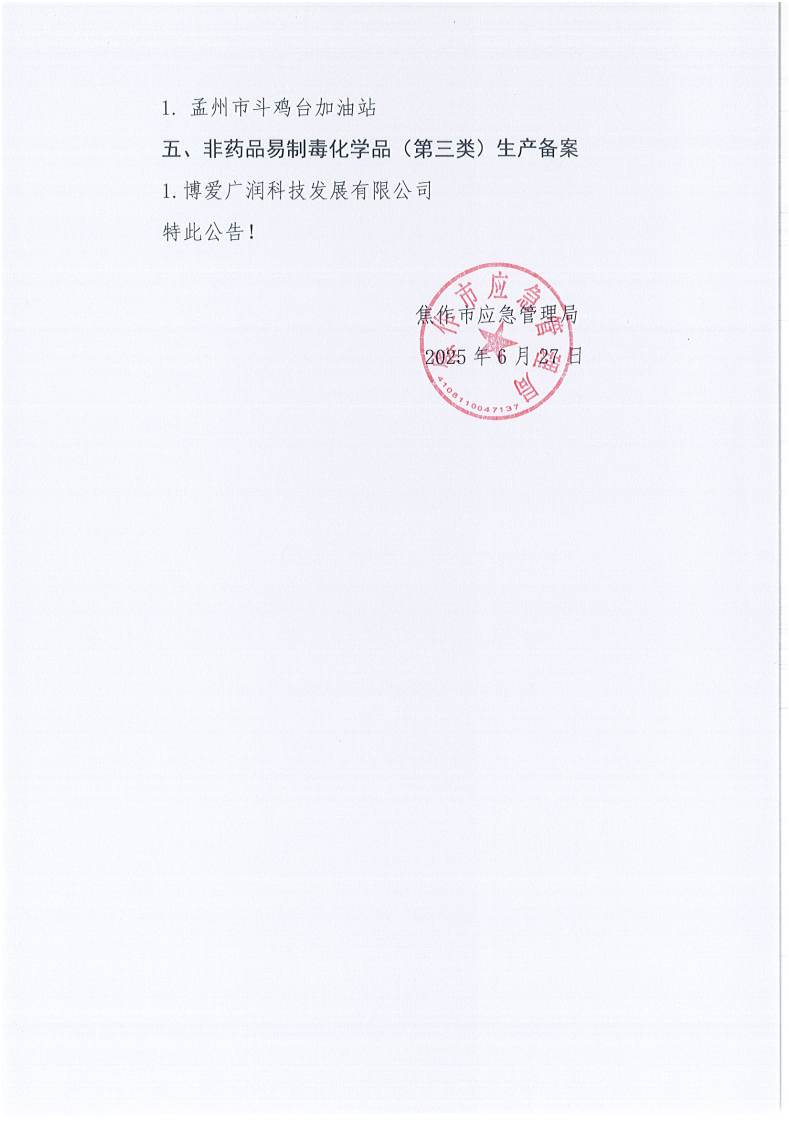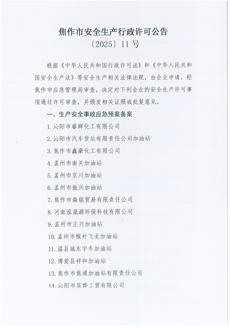 焦作市安全生产行政许可公告(〔2025〕11号)