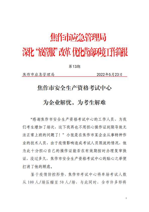 焦作市安全生产资格考试中心 为企业解忧,为考生解难